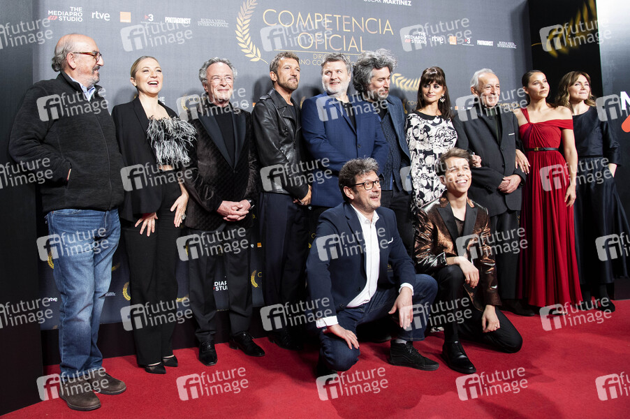 Pilar Castro, Oscar Martinez, Antonio Bandera, Gaston Duprat, Mariano Cohn, Penelope Cruz, Jose Luis Gomez, Irene Escolar, Nagore Aramburu, Manolo Solo und Koldo Olabarri bei der Premiere des Kinofilms 'Competencia oficial / Official Competition' im Cine Capitol. Madrid, 21.02.2022