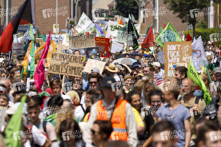Erderwärmung, Klimagase, Kohlegegner, Klimaaktivisten, Klima-Notstand, Klimanotstand, Klimakrise, Klima-Krise, Energiewende, CO2, Treibhausgase, Klimaschutz, Schulstreiks für das Klima, Klima-Demonstration, Klima-Demo, Klimademo, Fridays for Future, Ende Gelände, Demonstration, Demonstranten, Demo, Kundgebung, Kohlekraft, RWE, Protest, Aktion, Banner, Parolen, Politik, Klimaschutz, Klimakrise, Klimawandel, CO2-Ausstoß, CO2-Steuer, Kohleausstieg, Fossile Brennstoffe, Klimapolitik, Hochneukirch, Keyenberg, Jüchen, Erkelenz, Grevenbroich, Tagebau, Garzweiler II, Braunkohlerevier, Climate Change, Jugendbewegung, Aktivismus, Climate Justice, Polizeikette, Polizei, Demonstrationszug, Braunkohlegegner, Grubenrand, Aktivisten, Goldener Finger, Polizei, Polizeikräfte, Aktionsbündnis, Neurath, Kohle, Kohleversorgung, Braunkohle, Steinkohle, Symbolbild, Symbolfoto