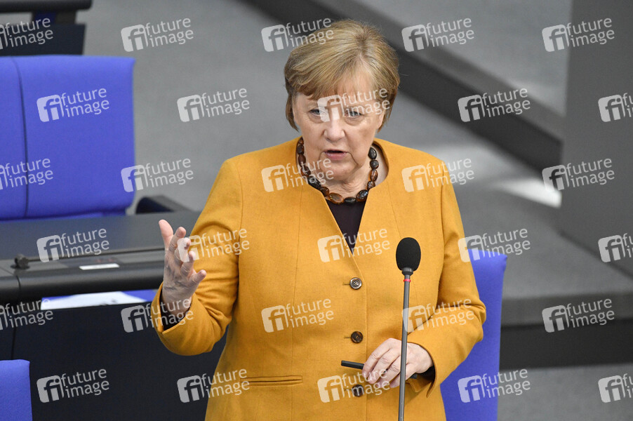 Angela Merkel in der 217. Sitzung des Deutschen Bundestages im Reichstagsgebäude. Berlin, 24.03.2021