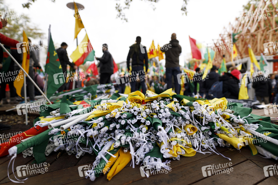 Kurdendemo, Kurden-Demonstration, Kurden-Demo, NavDem, Nav-Dem, YPG, Rojava, demokratisches Gesellschaftszentrum der Kurdinnen in Deutschland, PKK, Apo, kurdische Arbeiterpartei, Anti-Erdogan-Demo, Kurdistan, Demo, Demonstration, Demonstranten, Politik, Kurden, Kurde, kurdisch, Protest, Aktion, Demo gegen Erdogan, Fahne, Flaggen, Afrin, Syrien, Militäroffensive in Syrien, Türkei, Invasion, Einmarsch in Syrien, Versammlungsrecht, Nord-Syrien, Symbolbild, Symbolfoto