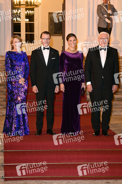 Elke Büdenbender, Prinz Daniel von Schweden, Kronprinzessin Victoria von Schweden und Frank-Walter Steinmeier bei der Ankunft zum Abendessen anlässlich des 25. Jubiläums der Nordischen Botschaften im Schloss Bellevue. Berlin, 21.10.2024