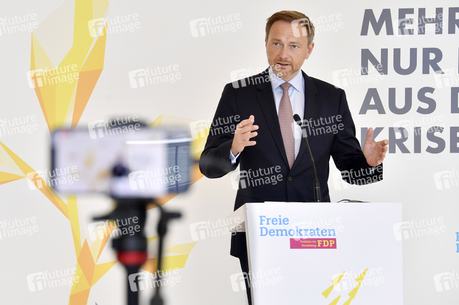 Christian Lindner bei einem Pressestatement der FDP vor der Fraktionssitzung auf der Fraktionsebene im Reichstagsgebäude. Berlin, 18.05.2021