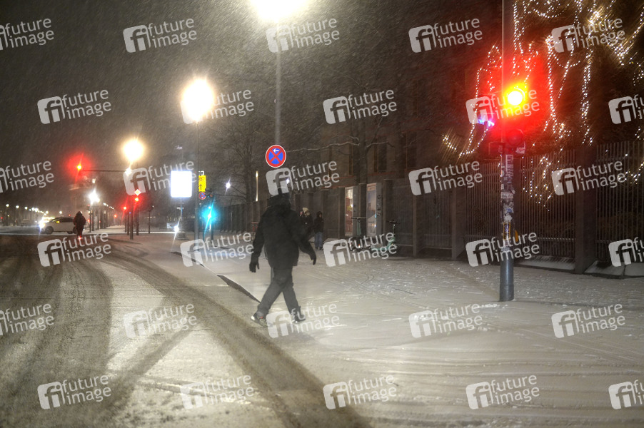 Schnee auf vereister Fahrbahn an der Ebertstraße. (Symbolbild, Symbolfoto) Berlin, 05.01.2025