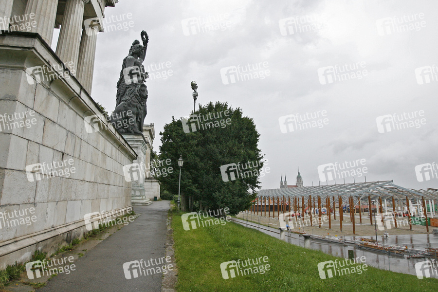 weibliche Symbolgestalt und weltliche Patronin Bayerns, im Auftrag von König Ludwig I. in den Jahren 1843-1850 errichtet, Entwürfe von Leo von Klenze, 18.52 Meter hoch, Bronzehohlguss, Höhe des Steinsockels 8.92 Meter, Bildhauer Ludwig Schwanthaler