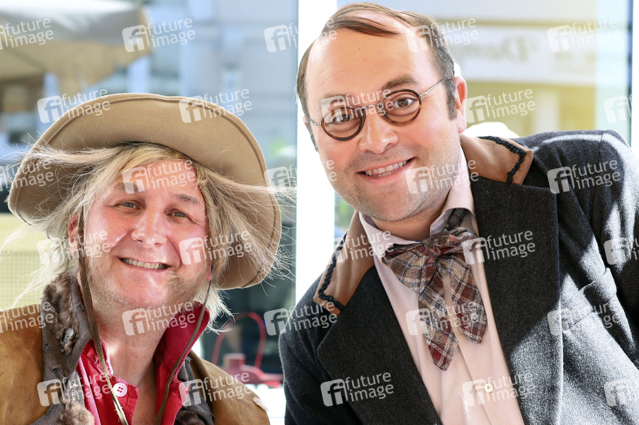 Jogi Kaiser und Patrick L. Schmitz bei einer Autogrammstunde der Karl-May-Festspiele in der Fußgängerzone. Bad Segeberg, 06.08.2022