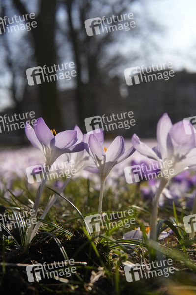 Blühende Krokusse auf dem Platz des 23. April m Stadtteil Köpenick. Berlin. 07.03.2023