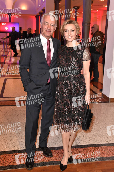 Christoph M. Ohrt mit Lebenspartnerin Dana Golombek bei der Verleihung des 17. Deutschen Hörfilmpreises 2019 in der Hauptstadtrepräsentanz der Deutschen Telekom. Berlin, 19.03.2019