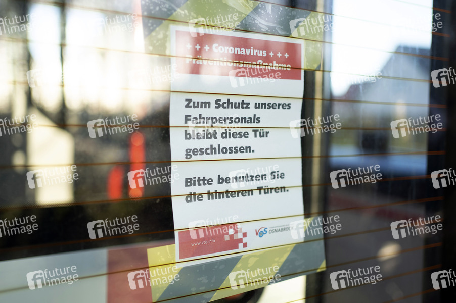 Bus, Busfahren, Bustüren, Stadtwerke, Verkehrsgemeinschaft Osnabrück, Virus, Viren, Corona, Sars-CoV-2, Covid-19, Coronavirus, Coronaviren, Corona-Virus, Corona-Viren, Ansteckung, Ansteckungsgefahr, Epidemie, Pandemie, Corona-Angst, Corona-Krise, Symbolfoto, Symbolbild