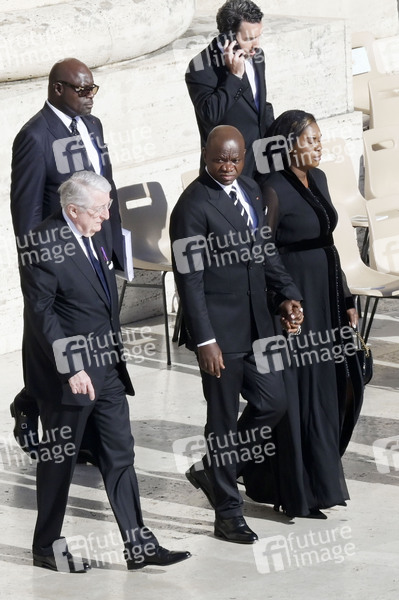 Brice Oligui Nguema mit Ehefrau Zita Oligui Nguema bei der Trauermesse für den verstorbenen Papst Franziskus auf dem Petersplatz. Vatikanstadt, 26.04.2025
