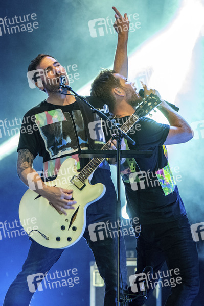 Niels Kristian Hansen und Johannes Strate von Revolverheld live bei der Sommer Open Air Tour 2021/22 in der Freilichtbühne Junge Garde. Dresden, 07.08.2021