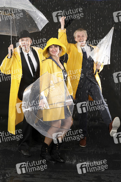 Fotoshooting, Unterhaltung, Entertainment, Kultur, Singin' in the Rain, Singing in the Rain, Musical, Regen, Wetter, Regenschauer, Nieselregen, Platzregen, Niederschlag, Gewitter, Wasser, Wetterprognose, Wettervorhersage, Regenschirn, Schirm, Regenjacke, Südwester, Regenkleidung, Regenwetter, Symbolbild, Symbolfoto