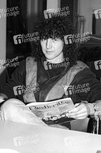 Peter Baltes von Accept Backstage im Hammersmith Odeon. London, 29.01.1984