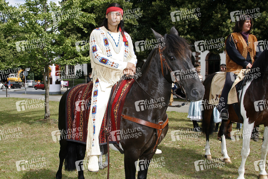 Das Ensemble der Karl-May-Spiele 2009 nimmt Ministerpräsident Wulff in den Kreis der Ehrenhäuptlinge auf. Dazu fanden sich die Mitwirkenden von 'Der Schatz im Silbersee' in der Niedersächsischen Staatskanzlei in Hannover ein.