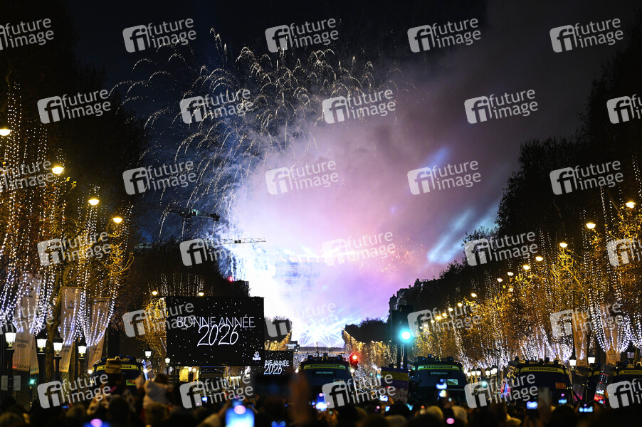 Silvesterfeuerwerk 2026 auf der Champs Elysees. Paris, 01.01.2026