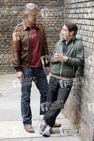 Dominic Raacke und Boris Aljinovic beim Setfototermin zum ARD-Krimi 'Tatort - Großer schwarzer Vogel' in der Schlesischen Straße. Berlin, 26.06.2013
