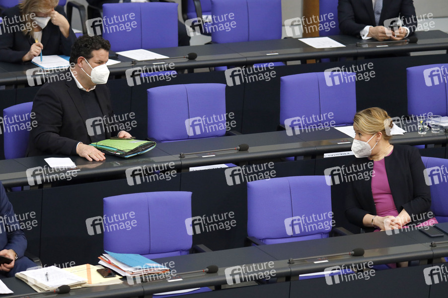 Hubertus Heil und Franziska Giffey in der 219. Sitzung des Deutschen Bundestages im Reichstagsgebäude. Berlin, 26.03.2021