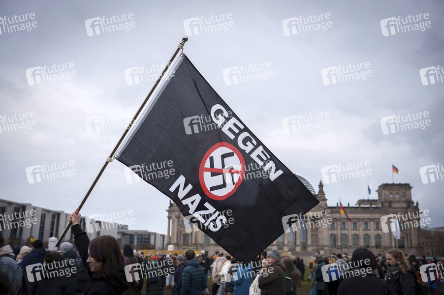 Politik, Demonstration, Campact, Bundestag, Hass, Hetze, Extremismus, Kundgebung, Brandmauer, Demo, Aktion, Banner, Demonstrant, Demonstranten, Demonstrierende, Demonstrationszug, demonstrieren, Protestaktion, Protestdemo, Protestdemonstration, Protestmarsch, Protestzug, gegen Rechts, Rechtsextremismus, gegen AfD