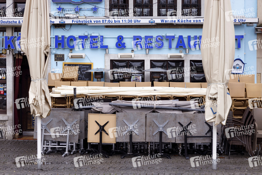 Der Lockdown aufgrund der Coronakrise trifft die Kneipen, Restaurants und Hotels in der Kölner Altstadt hart. Im Bild ein Hotel Restaurant am Rheinufer. (Themenbild, Symbolbild) Köln, 10.01.2021
