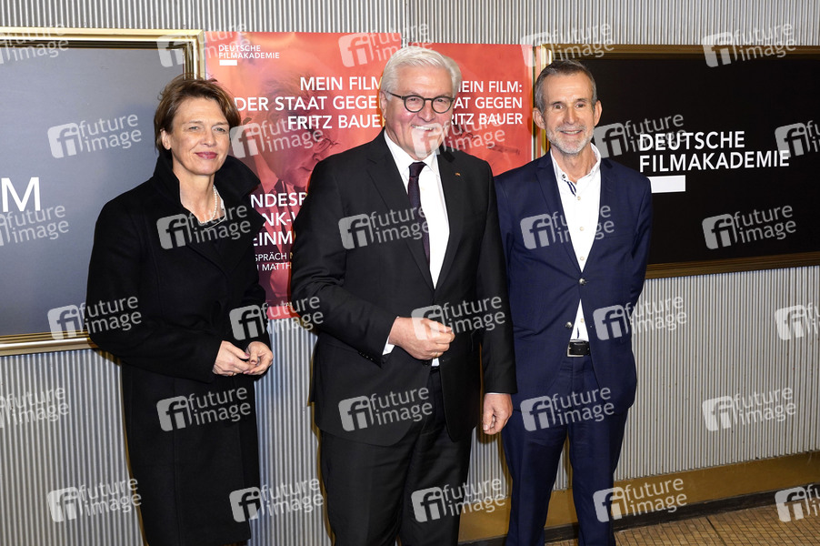 Frank-Walter Steinmeier mit Ehefrau Elke Büdenbender und Ulrich Matthes beim Fototermin zur Veranstaltungsreihe 'Mein Film' mit Gespräch und Präsentation des Fernsehfilms 'Der Staat gegen Fritz Bauer' in der Astor Film Lounge. Berlin, 03.12.2019