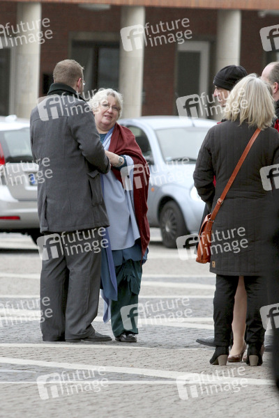 Eva-Maria Pfaff mit Sohn Maximilian bei der Trauerfeier für den am 05.03 verstorbenen Schauspieler Dieter Pfaff in der Hauptkirche St. Michaelis. Hamburg, 05.04.2013