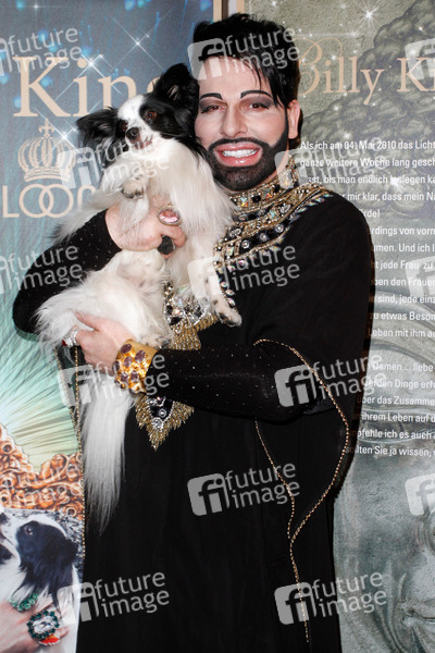 Hund Billy King und Harald Gloeoeckler bei der Buchvorstellung 'Billy King - mein Leben mit Harald Glööckler'. Berlin, 28.02.2013