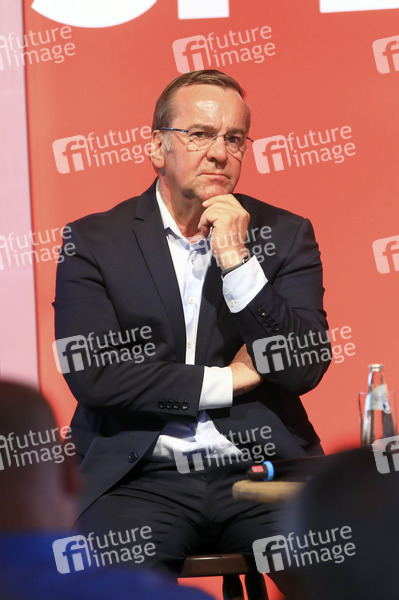 Boris Pistorius bei einer Wahlkampfveranstaltung der SPD zur Landtagswahl in Sachsen im Biergarten des Felsenkellers in Leipzig-Plagwitz. Leipzig, 22.07.2024