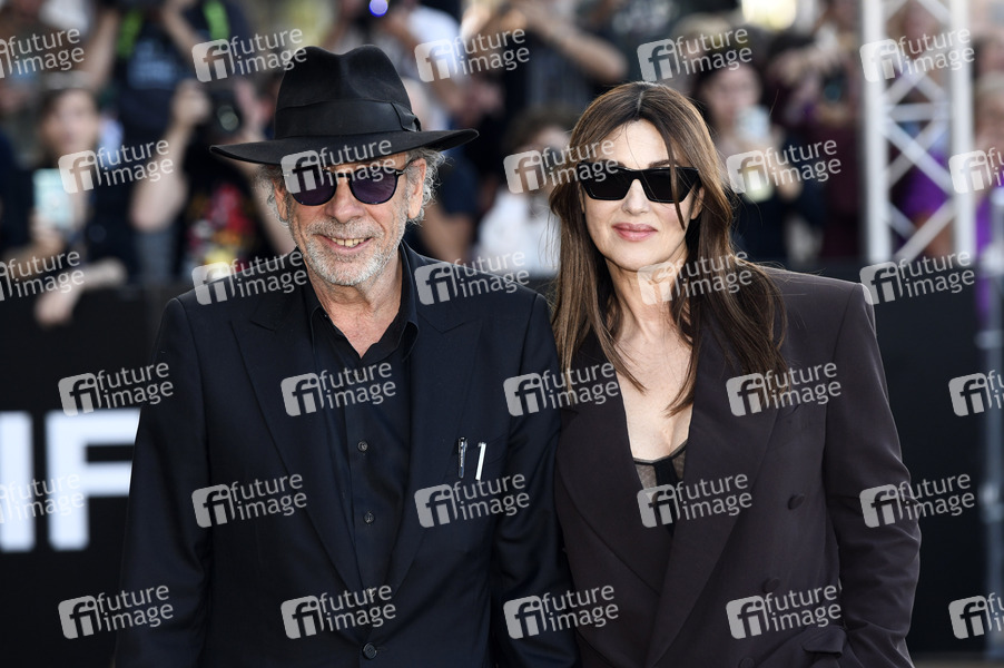 Tim Burton und Monica Bellucci bei der Ankunft am Hotel Maria Cristina auf dem 72. Internationalen Filmfestival San Sebastian / Festival Internacional de Cine de San Sebastián. San Sebastian, 25.09.2024