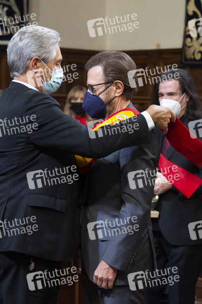 Jose Vicente Saz Perez, Björn Ulvaeus und Luis Cobos bei der Verleihung der Ehrenmitgliedschaften des Claustro Universitario de las Artes an der Universität Alcalá. Alcalá de Henares, 24.11.2021