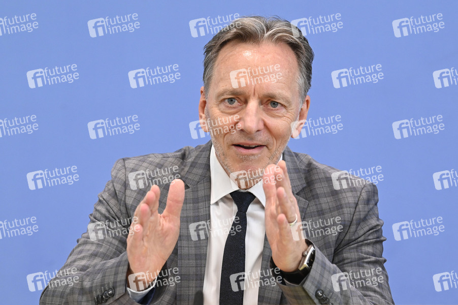 Holger Münch bei der Bundespressekonferenz zu den Fallzahlen für die Politisch Motivierte Kriminalität (PMK) 2023 im Haus der Bundespressekonferenz. Berlin, 21.05.2024