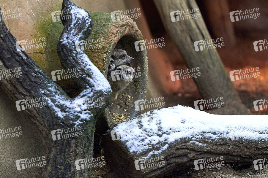 Erdmännchen bei der Inventur zum Jahresbeginn 2021 im Erlebnis-Zoo Hannover. Hannover, 14.01.2021