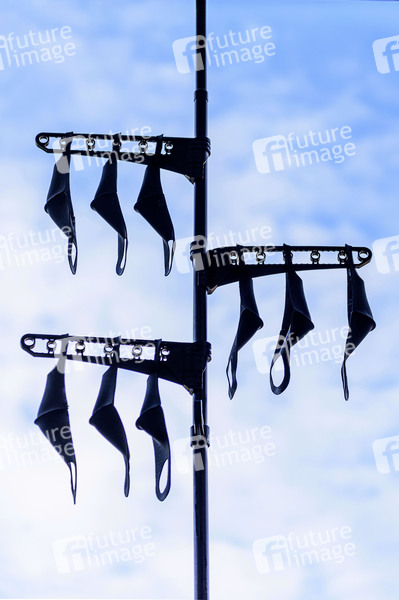 Gereinigte Mundschutze zum Trocknen aufgehängt