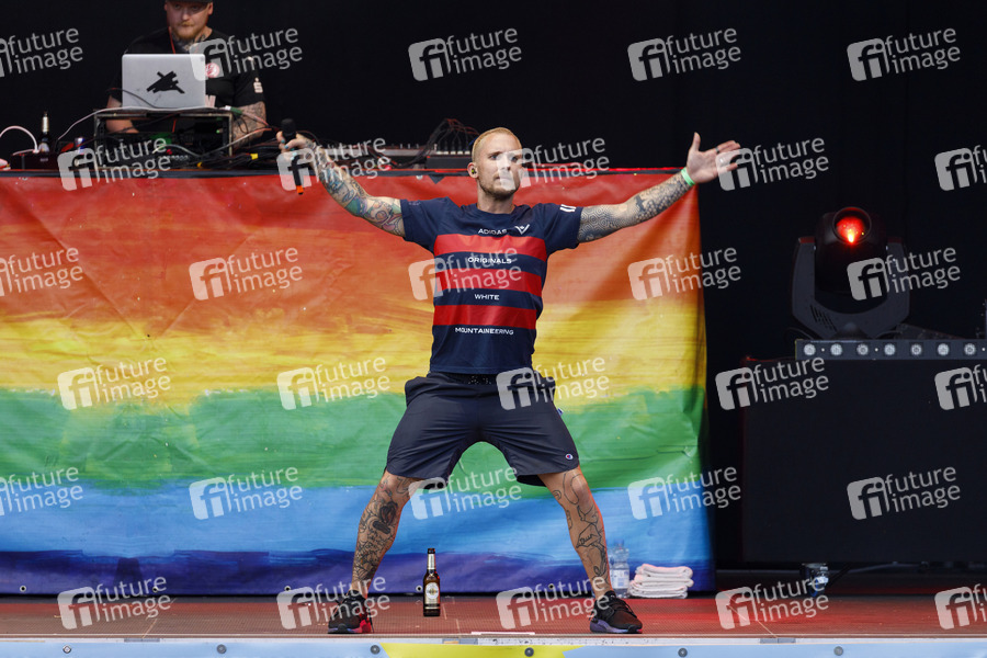 Daniel 'Shneezin' Schneider von der Band 257ers live im Kulturgarten in der Bonner Rheinaue. Das Bonn Live Kulturgarten Open Air Festival 2020 ist Europas erstes Open Air Musik Festival unter Corona-Auflagen wegen der Covid-19 Pandemie. Bonn, 22.07.2020