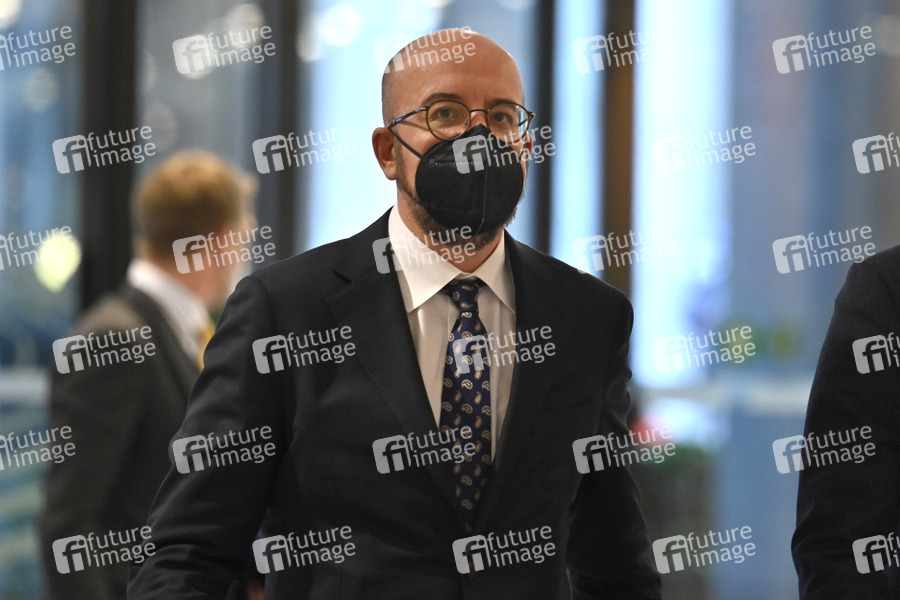 Charles Michel bei der Ankunft zur Debatte über die Aggression Russlands gegen die Ukraine im Plenarsaal des Europäischen Parlaments. Brüssel, 01.03.2022
