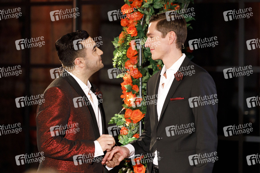 Lars Steinhöfel und Timothy Boldt beim Event zu 25 Jahre der RTL-Soap 'Unter uns' mit der Hochzeitsparty von Ringo und Easy im Harbour Club. Köln, 25.11.2019