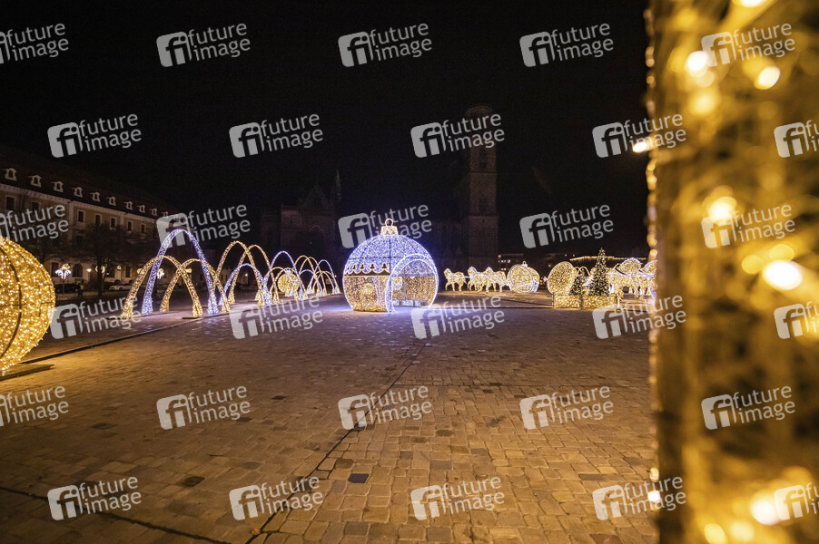 Lichterwelt auf dem Domplatz - Die Licherwelt Magdeburg mit der umfangreichste Weihnachts- und Winterbeleuchtung in Mitteldeutschland verteilt über die ganze Stadt. Magdeburg, 27.11.2022