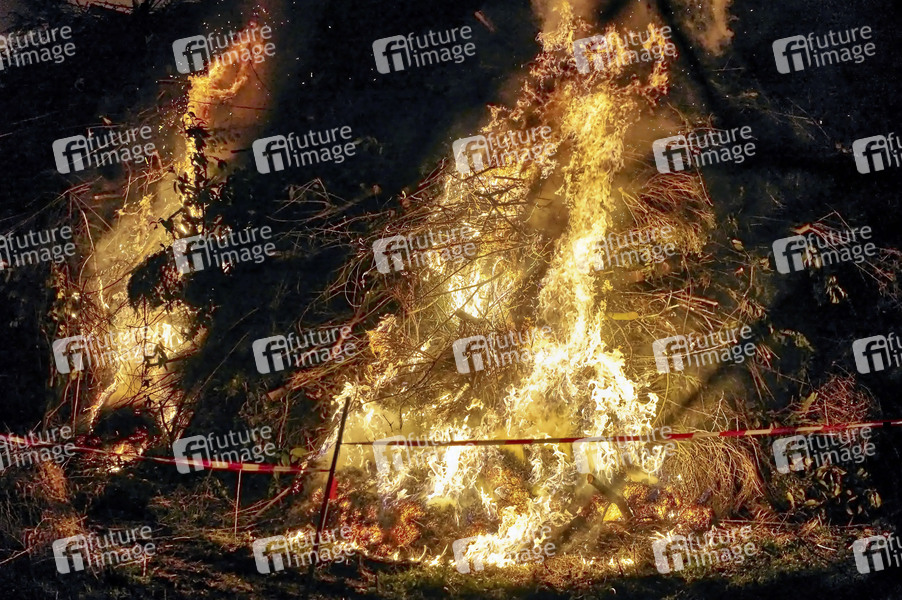 Ostern, Tradition, Feuer, Lagerfeuer, Weserbergland, Brauch, Feuerweihe, Ostersonntag, Osterbrauch, Holzstoß, Feuerwehr, Rauchentwicklung, Rauch, Qualm, Symbolbild, Themembild