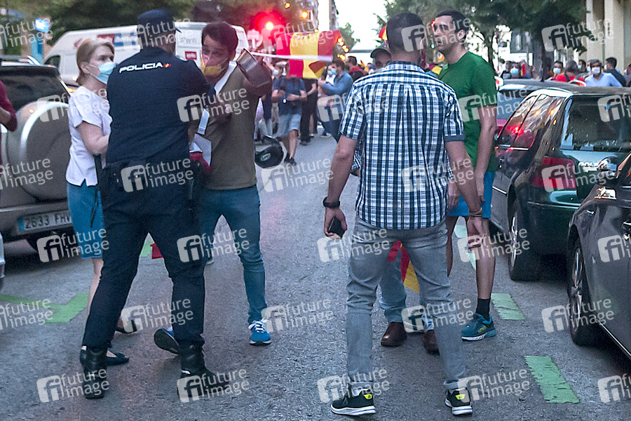 Die rechtspopulistische Partei Vox hat die Bürger aufgefordert mit Protesten gegen die Regierung 'die Straßen zurückzuerobern'. Proteste auf der Straße vor der PSOE Zentrale. Madrid, 22.05.2020