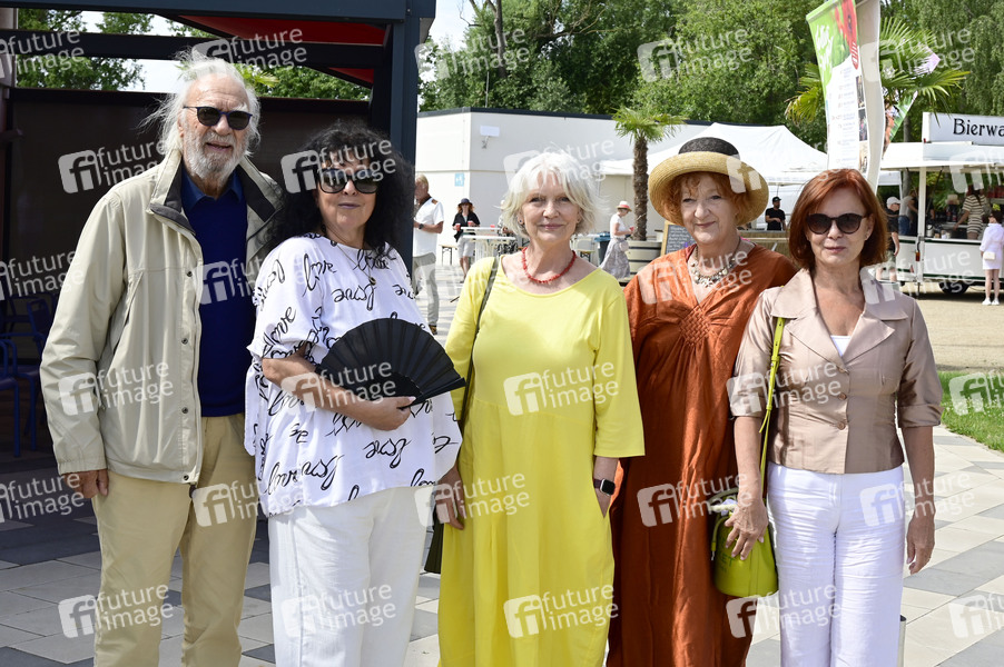 Achim Wolff, Heike Köfer, Rita Feldmeier, Dagmar Gelbke und Petra Blossey beim 2. Sommergarten 2025 auf der Beelitzer Freilichtbühne. Beelitz, 06.07.2025