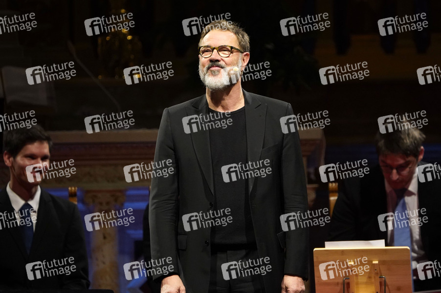 Sebastian Koch mit dem Chor Vocalis Ensemble Dresden und dem Jazztrio Dresden bei der Weihnachtslesung 'Und lauscht hinaus den weißen Wegen' im Rahmen der Lesereihe 'Meisterhaftes aus dem Berliner Dom' im Berliner Dom. Berlin, 26.11.2022