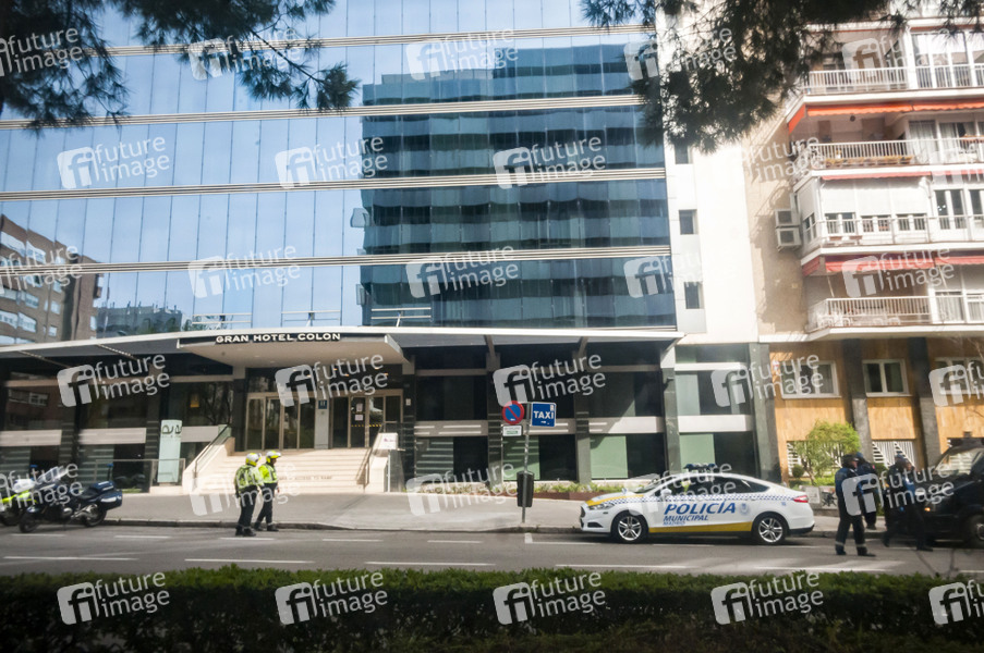 Die spanische Regierung hat den Ausnahmezustand wegen des Coronavirus COVID-19 erklärt. Die Bevölkerung steht 15 Tage zu Hause unter Quarantäne. Die spanische Polizei und Armee überprüfen Menschen, die durch die Straßen gehen. Erlaubt sind Gänge in Krankenhaus, in Supermärkte, Kioske und Apotheken, sowie das Ausführen von Haustieren und der Weg zur Arbeit. Madrid, 19.03.2020