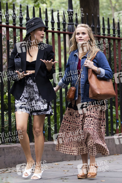 Zoe Chao und Reese Witherspoon bei Dreharbeiten zum Kinofilm 'Your Place Or Mine' in Midtown. New York, 05.10.2021