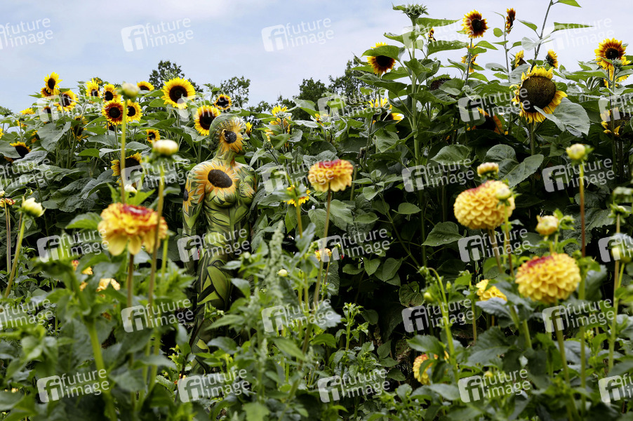 Bodypainting, Körperfarbe, Körperkunst, Körpermalerei, Künstler, Kunst, Art, Bodyart, Akt, Fineart, Malerei, Camouflage, Farbe, Fotografie, Fotoshooting, Fotoart, Frau, Fotomodell, Fotomodel, Model, Aktmodel, Aktmodell, Nacktmodell, Bodypaintingmodel, Bodypaintingmodell, Bodypaintmodel, Natur, Landschaft, Jahreszeit, versteckte Körper, Natur, Umweltschutz, Naturschutz, Klima, Klimaschutz, Umwelt, Ökologie, Sommer, Blumen, Sonnenblume, Feld, Blumenfeld, outdoor, natureart, body painting, artist, Color, colour, photography, woman, photo model, nude model, landscape, season, hidden bodies, environmental protection, natural reserve, climate protection, ecology, summer, flowers, sunflower, flower field