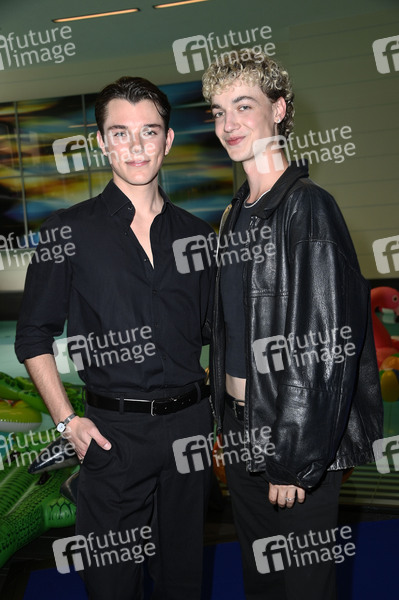 Jannik Richter und Tim Schröder beim Charity Promi Swim Event 2025 von Maximilian Seitz zugunsten von 'Kindeswohl-Berlin' im Hotel Pullman Berlin Schweizerhof. Berlin, 24.07.2025