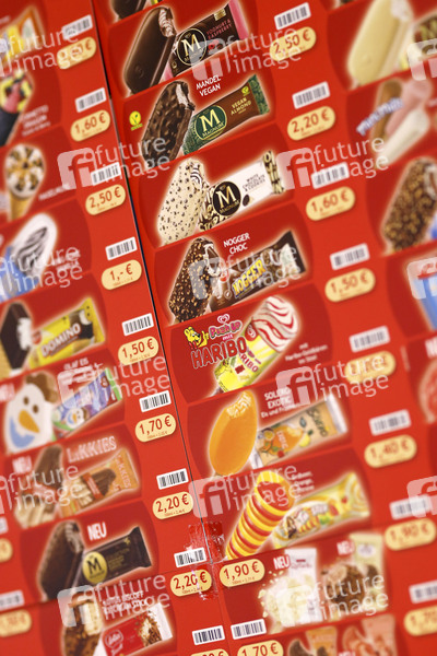 Eis am Stiel, Eismarke, Unilever, Speiseeis, Eis essen, Eisessen, Eisdiele, Fruchteis, Milcheis, Milchspeiseeis, Abkühlung, gefroren, schmelzen, Erfrischung, Cornetto, Magnum, Solero, Riesen Happen, Nogger, Domino, King Cone, Capri, Mini Milk, Likkies, Twister, Olaf Eis, Frigo, Eskimo, Algida, Symbolbild, Symbolfoto