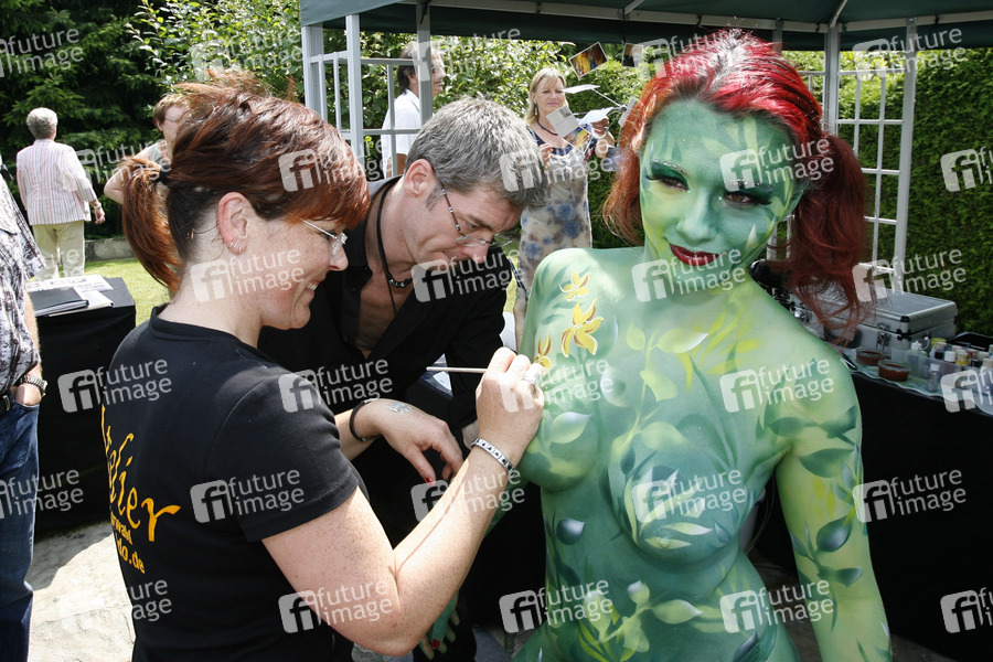 Bodypainting und Fotoshooting mit Model Nadine auf dem 'Tag des offenen Gartens' in Stadthagen-Niedernwöhren. Künstler: Jörg Düsterwald
