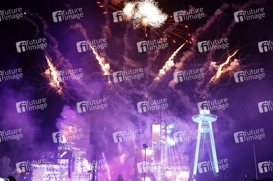 Lichtshow beim Starmus Opening Concert 'Bridge from the Future' auf der Open Air Bühne. Bratislava, 12.05.2024