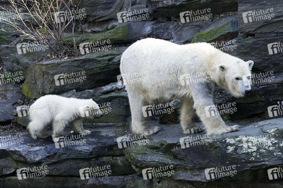 Eisbärin Hertha und Mutter Tonja bei ihrem ersten Ausflug nach der Namensgebung im Tierpark Berlin. Berlin, 02.04.2019