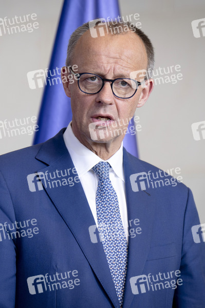 Friedrich Merz beim Empfang der dänischen Ministerpräsidentin mit militärischen Ehren zu einem gemeinsamen Gespräch mit anschließendem Pressestatement im Bundeskanzleramt. Berlin, 11.06.2025