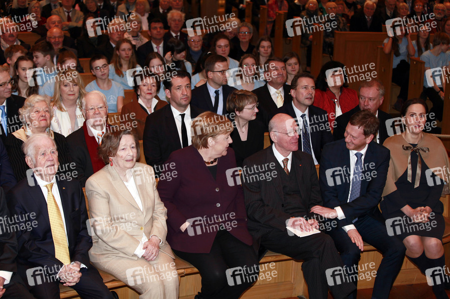 Kurt Biedenkopf, Ingrid Biedenkopf, Angela Merkel, Norbert Lammert, Michael Kretschmer und Annett Hofmann bei der Festveranstaltung '30 Jahre Friedliche Revolution und Neugründung des Freistaates Sachsen - 90 Jahre Kurt Biedenkopf' in der Frauenkirche. Dresden, 28.01.2020