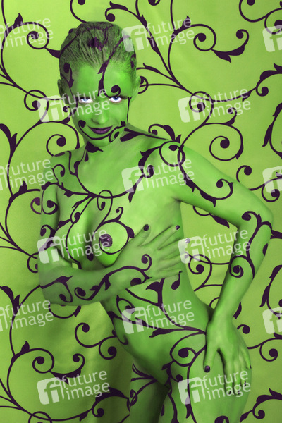 Bodypainting, Stoff, Erotik, Frau, nackt, drinnen, weiblich, Muster, erotic, woman, nude, indoor, female